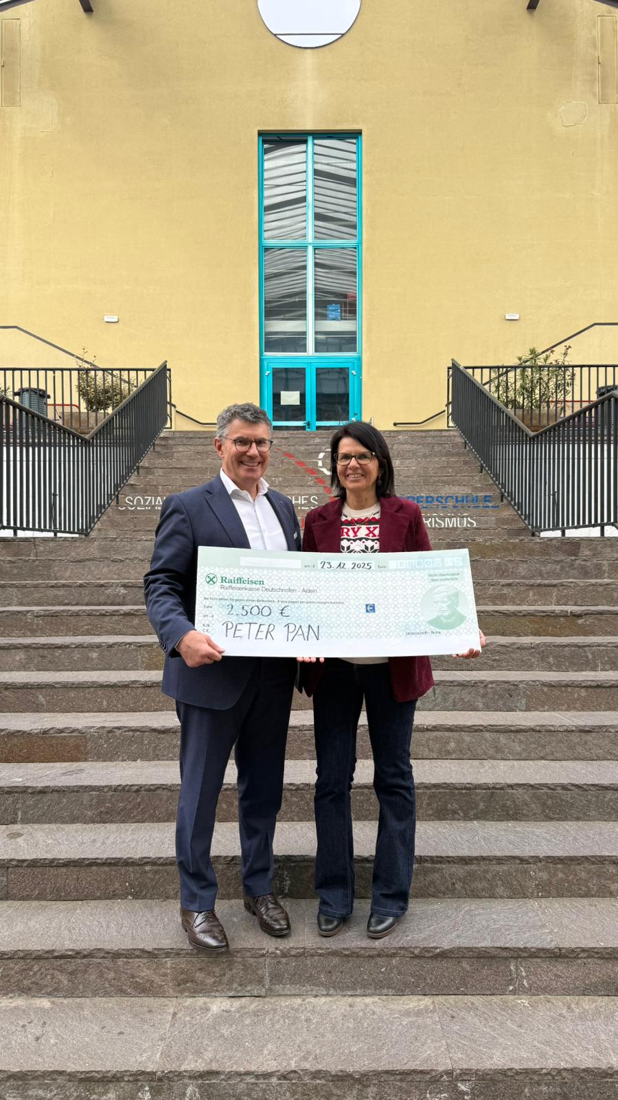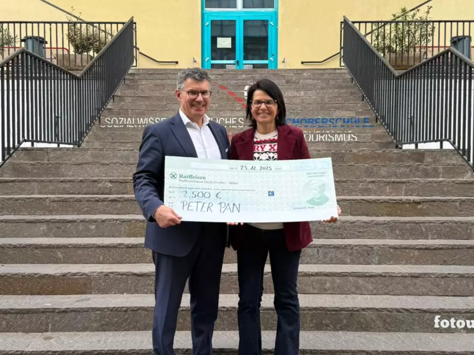 Bozen – Ein besonders berührender Moment prägte die traditionelle Weihnachtsfeier des Sozialwissenschaftlichen Gymnasiums und der Fachoberschule für Tourismus in Bozen: Die Schulgemeinschaft überreichte eine Spende von 2.500 Euro an den Verein „Peter Pan“. Der Betrag wurde mit großem Engagement im Rahmen der Adventskranzaktion gesammelt und ist Ausdruck gelebter Solidarität in der Vorweihnachtszeit.