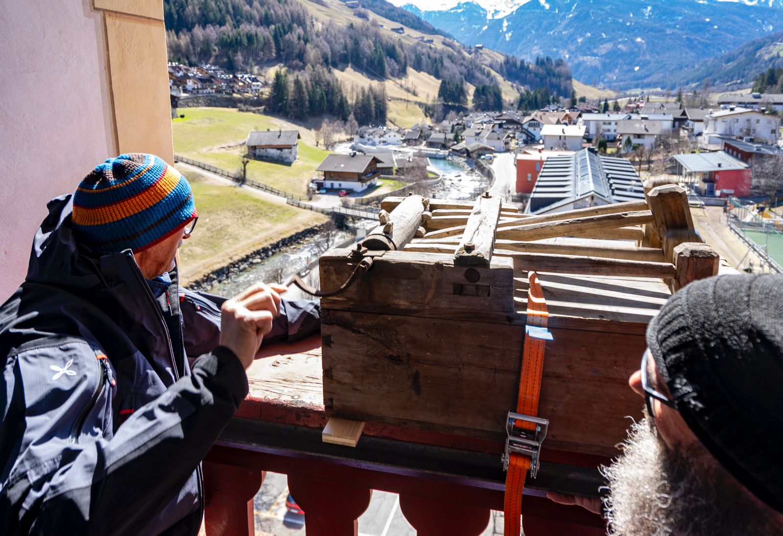 Wiederbelebung der historischen Ratsche im Kirchturm St. Johann