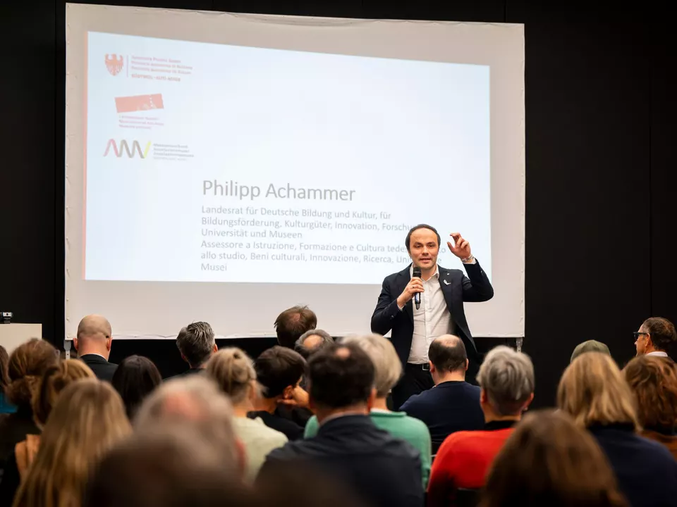 Der Landesrat für Deutsche Bildung und Kultur, für Bildungsförderung, Kulturgüter, Innovation, Forschung, Universität und Museen Philipp Achammer betonte bei der Eröffnung: “Museen sind wichtige Orte demokratischer Teilhabe. Es ist wesentlich, junge Menschen aktiv einzubinden und ihnen Räume zu eröffnen, in denen sie ihre Perspektiven einbringen können.”