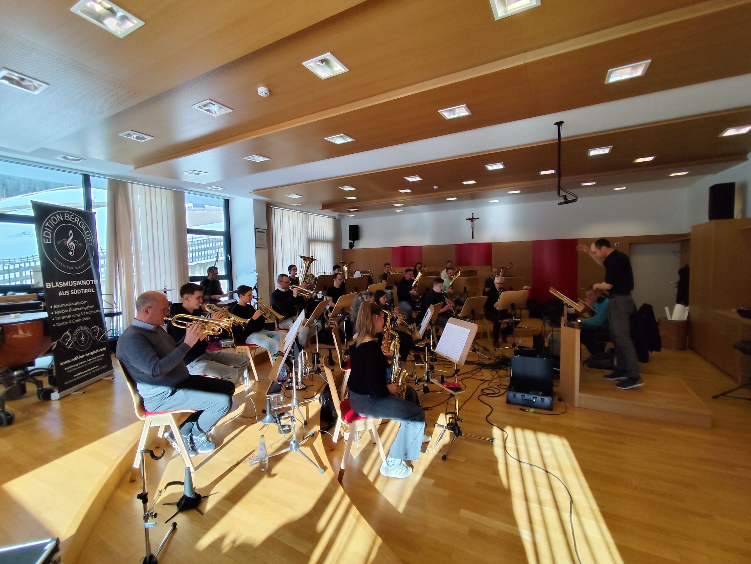 Jenesien/Flaas – Ganz im Sinne des Titels des neuen Marsches fand am vergangenen Wochenende die erste Ausgabe des „Bergluft-Verlagsorchesters” im Probelokal in Flaas statt.