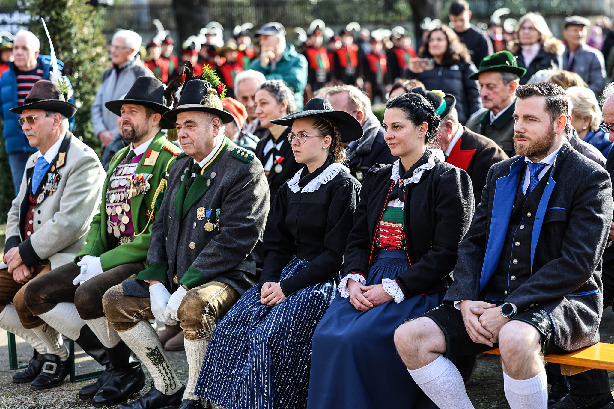 Im Anschluss wurden im Pavillon des Fleurs des Meraner Kurhauses verdiente Schützenkameraden mit den Verdienstmedaillen in Bronze und Silber ausgezeichnet. Mit dieser Ehrung stellt der Südtiroler Schützenbund jene Persönlichkeiten in den Mittelpunkt, die über viele Jahre hinweg im Sinne des Tiroler Schützenwesens federführend und mit besonderem Einsatz gewirkt haben. Die Laudationes hielten die jeweiligen Bezirksmajore.