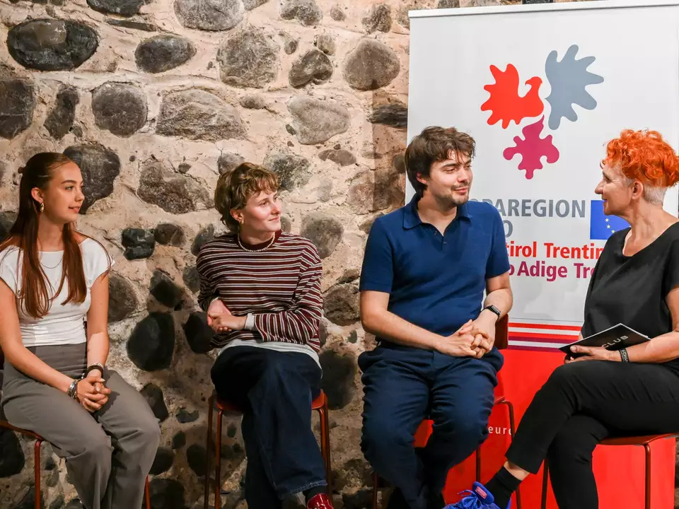 In zwei Kamingesprächen und mit einem Kurzfilm blickten die ehemaligen Jurymitglieder Janick Entremont aus Tirol von der allerersten Jury von 2016, Ida Waldner (Südtirol) und Stefania Pedrotti (Trentino) sowie die Gründungsinitiatorinnen Helene Christanell (ehemalige Festivaldirektorin des Filmfestivals), Werther Ceccon und Arnold Schnötzinger, Ö1 Filmkritiker und Referent seit zehn Jahren, auf die Anfänge zurück und berichteten über Ziele, spezielle Augenblicke und Erfolge dieser Jugend-Filmjury.