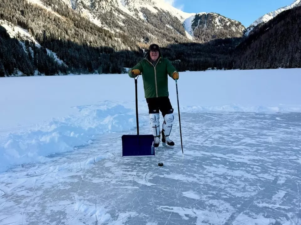Rasen-Antholz – Wo sich im Sommer fleißigen Wandern eine Abkühlung bietet, wird jetzt auf Natureis Hockey gespielt. Martin Ausserdorfer, Bürgermeister von St. Lorenzen und Direktor der BBT-Beobachtungsstelle, hat am Antholzer See ein Eishockeyfeld präpariert – mit Schneeschaufel, Puck und jeder Menge Enthusiasmus.