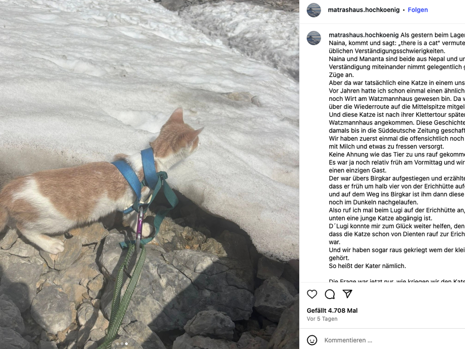 Dienten am Hochkönig – Kater Chino, gerade einmal drei Monate alt, büxte aus seinem Zuhause in Dienten am Hochkönig aus und folgte einem Wanderer ganze sieben Stunden lang bis auf den Gipfel des Hochkönigs auf knapp 3.000 Metern. Oben angekommen, machte er es sich erst einmal gemütlich und schlief im Matratzenlager der Hütte.