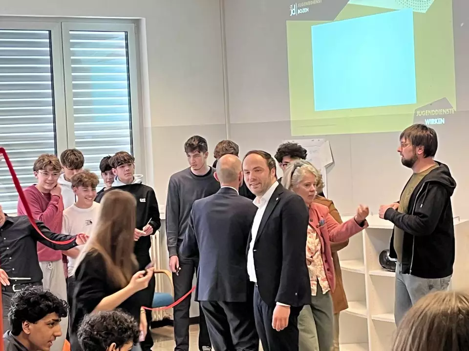Nach einem offenen Empfang und kurzen Grußworten wurde das Projekt vorgestellt, das seit Schulbeginn bereits im Aufbau ist. Träger des Projekts ist der Jugenddienst Bozen. Besonders Jugendarbeiterin Julia Gögele und Michael Torggler vom Jugenddienst Bozen, die in das Projekt viel Arbeit investiert haben, freuten sich über die gelungene Eröffnung.