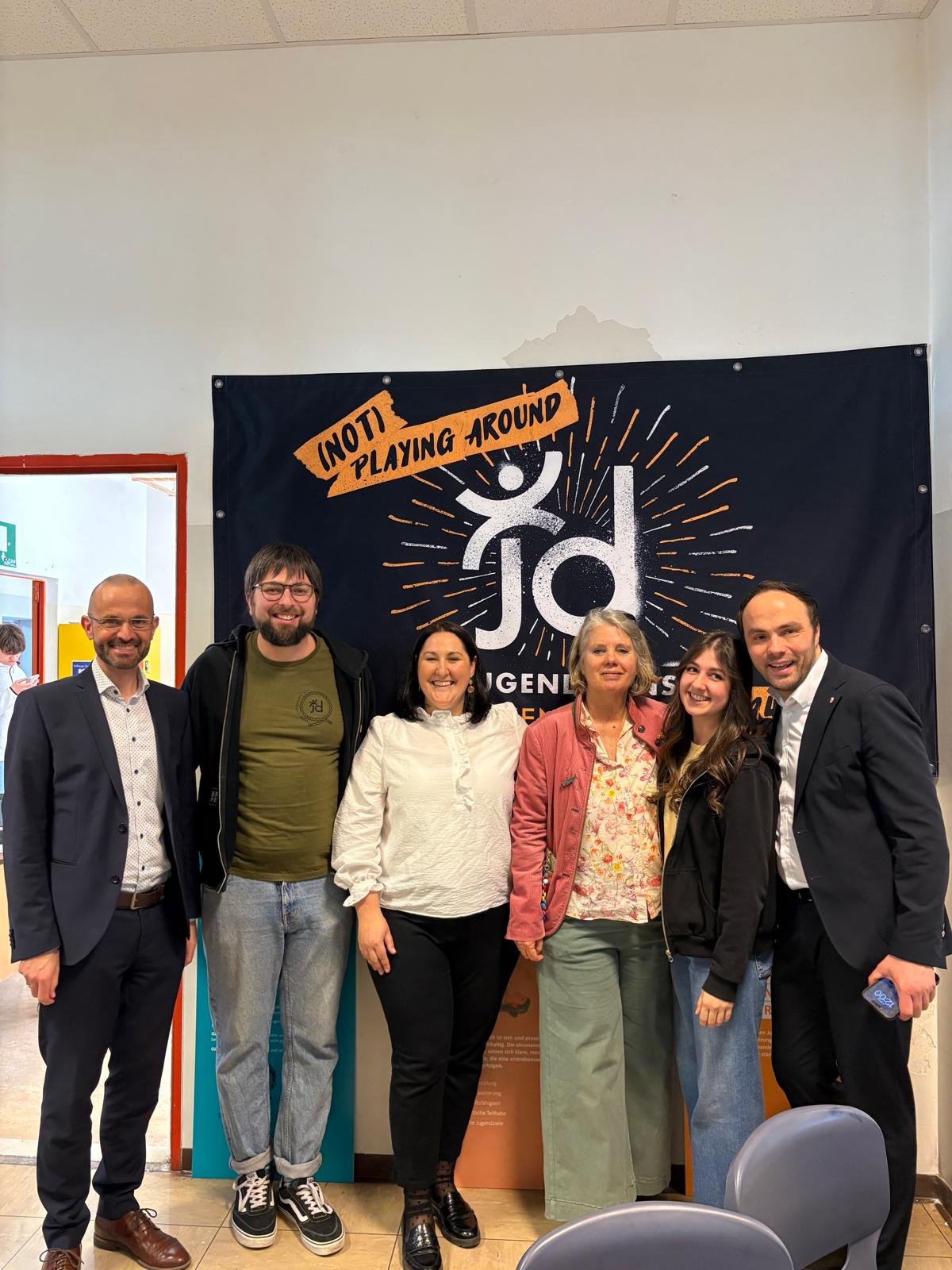 Unter ihnen auch Landesrat Bildungslandesrat Philipp Achammer, Amtsdirektor Konrad Pamer, Direktor Ralf Stefan Troger, Initiatorin Prof. Ingeborg Mahlknecht sowie Dr. Edith Ploner Verwaltungsrätin der Stiftung Sparkasse und das Team des Jugenddienstes Bozen.