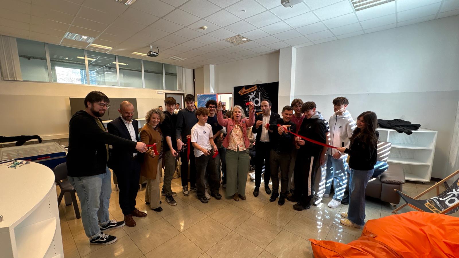 Mit dem symbolischen Durchschneiden eines Bandes und der Enthüllung eines großen Namensschildes fiel der offizielle Startschuss für „Room 67“ – benannt nach einem partizipativen Prozess, in dem sich die Schülerinnen und Schüler selbst für diesen Namen entschieden hatten.