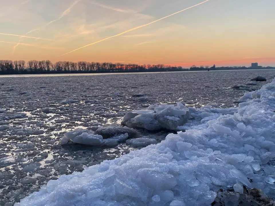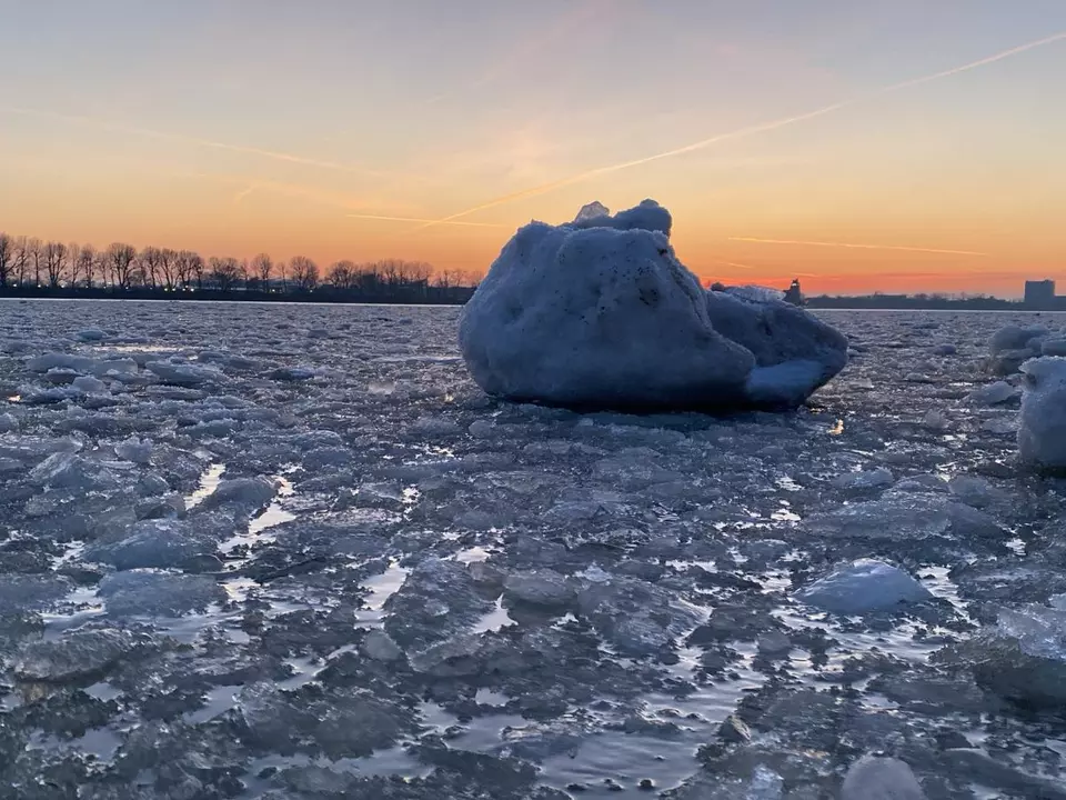 Das seltene und schöne Natur-Phänomen zieht zahlreiche Schaulustige an die Elbufer. Auf der Höhe von Hamburg ist das Eis zwar nicht mehr meterhoch, aber gerade im Abendlicht ein Augenschmaus.