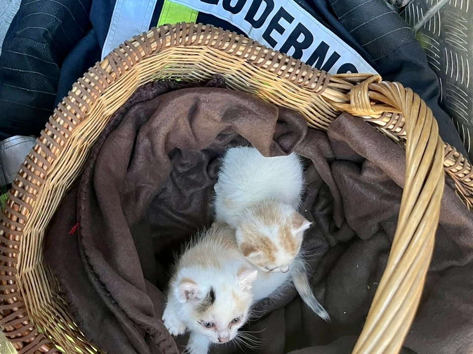 Die beiden jungen Katzen hatten ihrer Entdeckungslust freien Lauf gelassen. Bei ihrer Erkundungstour waren die Fellnasen aber in einen engen Schacht gefallen und saßen dort hilflos fest. Aus eigener Kraft kamen sie nicht mehr heraus.