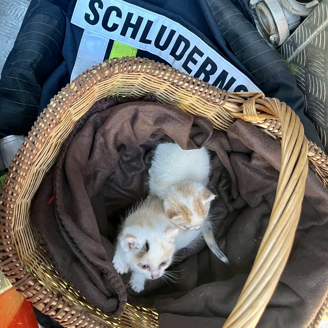 Mit viel Geduld und dem nötigen Fingerspitzengefühl gelang es den Rettern der Freiwilligen Feuerwehr Schluderns, die beiden kleinen Stubentiger unverletzt aus ihrer misslichen Lage zu befreien.