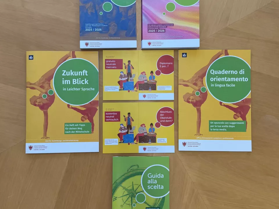 Bozen – Wer Informationen und Orientierung zu Schulen, Studium und Weiterbildung sowie zu Berufen sucht, ist beim Landesamt für Ausbildungs- und Berufsberatung an der richtigen Adresse. Zusätzlich zu den bestehenden Broschüren wurden für den Herbst weitere Informationsmaterialien für Jugendliche und deren Eltern neu aufgelegt. Die Broschüre “Wegweiser” gibt eine Übersicht über das gesamte deutsche und ladinische Schulangebot mit Tipps für Eltern, “Scegli il tuo futuro” bietet eine Übersicht über das italienische Schulangebot, eine italienischsprachige Elternbroschüre gibt Tipps für die Unterstützung der Jugendlichen. Zudem gibt es einen Flyer für Jugendliche der Oberstufe in deutscher und italienischer Sprache mit wichtigen Kontaktinformationen.