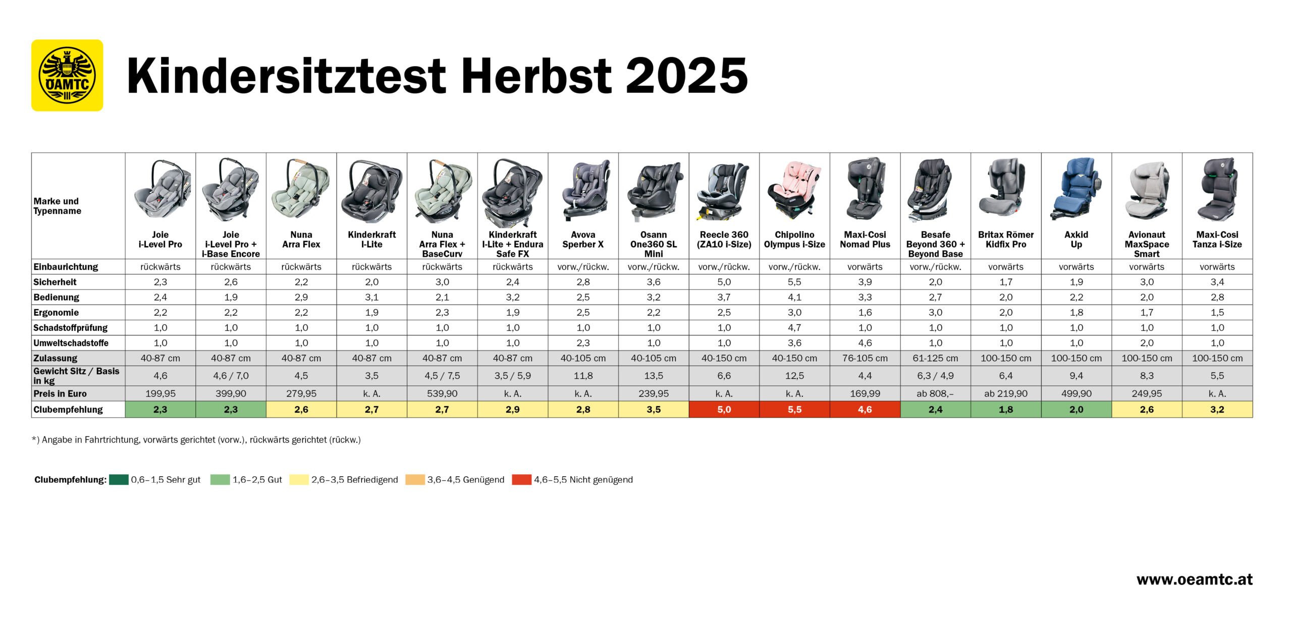 Nachdem im Mai bereits 19 Kindersitze auf Herz und Nieren geprüft wurden, hat der Mobilitätsclub ÖAMTC gemeinsam mit seinen Partnerorganisationen nun weitere 16 aktuelle Modelle in den Kategorien Sicherheit, Bedienung, Ergonomie und Schadstoffen getestet.