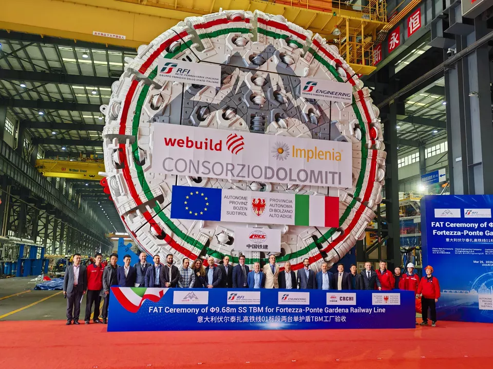 Franzensfeste/Waidbruck – Die Bietergemeinschaft Consorzio Dolomiti, bestehend aus den Firmen WeBuild und Implenia, hat für den Bau der Zulaufstrecke Franzensfeste-Waidbruck zwei Tunnelbohrmaschinen bei der Firma CRCHI (China Railway Construction Heavy Industry Corporation Limited) bestellt. Diese wurden im Werk in Changsha in China produziert. Ingenieure der Baufirma haben dort in den letzten zehn Tagen die technische Abnahme (FAT – Factory Acceptance Test) durchgeführt. Am Donnerstag, den 26. März, erfolgte die feierliche Übergabe.