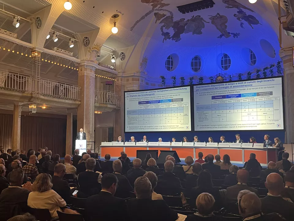 Meran – Am Donnerstag fand im Kursaal in Meran die außerordentliche und ordentliche Hauptversammlung der Volksbank statt. Es waren über 26 Prozent des Grundkapitals vertreten. Die beschlossenen Änderungen der Satzung sehen vor, dass der Verwaltungsrat ab 2026 einen geschäftsführenden Verwaltungsrat ernennen kann.