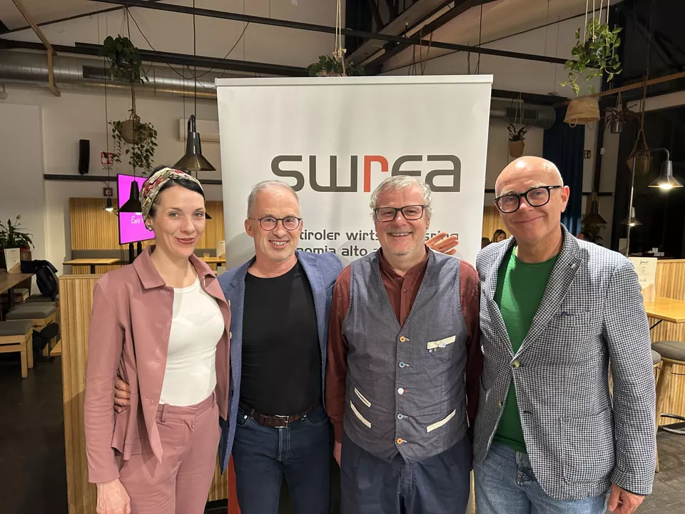 Mit der Übergabe der Bezirkspräsidentschaft an Wolfgang Töchterle übernimmt nun ein Vertreter des lvh die Leitung des SWR-Bezirks Burggrafenamt. SWR-Geschäftsführer Roman Fuchs und SWR-Präsident Sandro Pellegrini dankten Adi Erlacher ausdrücklich für seinen engagierten Einsatz in den vergangenen beiden Jahren an der Spitze des Bezirks und wünschten Wolfgang Töchterle viel Erfolg für seine neue Aufgabe als Bezirkspräsident.