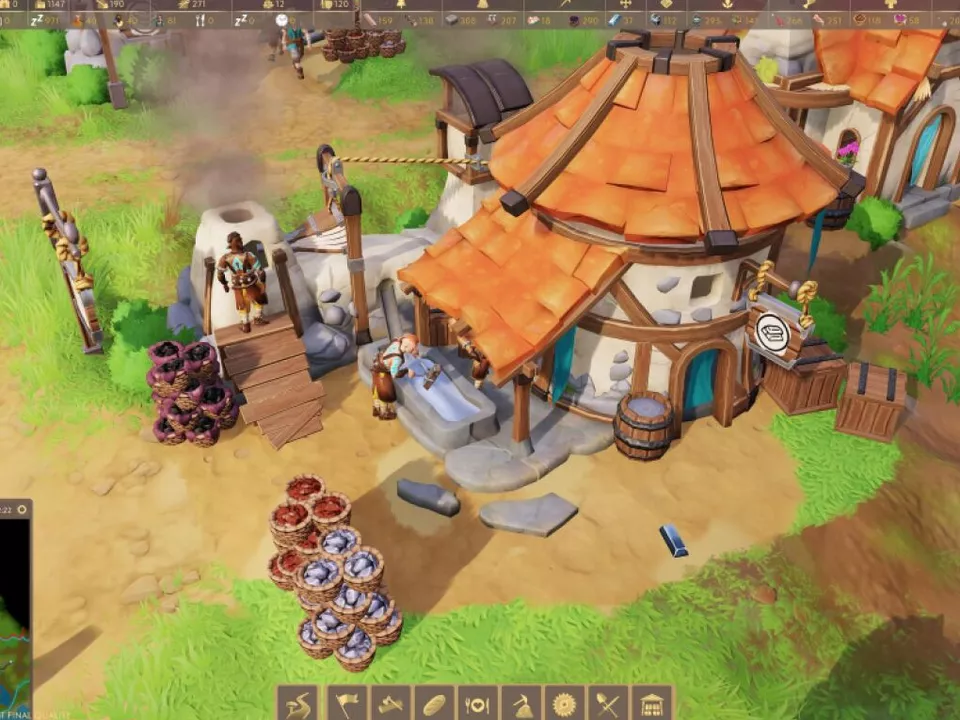 Mit weiteren Rohstoffen lassen sich dann neue Gebäude errichten, die auch wieder zur Erschließung neuer Rohstoffe benötigt werden. Und natürlich setzt sich in den Unterkünften auch der Kreislauf des Lebens zwischen den Bewohnerinnen und Bewohnern fort. Sogar Perspektiven gibt es dann für den Nachwuchs: In einem Haupthaus werden Spezialisierungen und Weiterbildungen angeboten, etwa zum Träger.