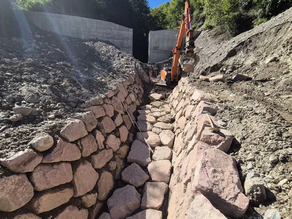 Nach einem Projekt des Ingenieurbüros Patscheider und Partner im Auftrag der Gemeinde und in Zusammenarbeit mit der Wildbachverbauung hat die Gruppe mit Vorarbeiter Otto Gruber im März dieses Jahres mit der Umsetzung begonnen, berichtet Bauleiter Johannes Holzner vom Landesamt für Wildbach- und Lawinenverbauung Nord: “Bergseits vom Schiedmannhof haben wir eine 7 Meter hohe und 35 Meter breite Rückhaltesperre aus Stahlbeton errichtet und anschließend eine 30 Meter lange Künette.” Die Wildbachverbauung hat diese Arbeiten im September abgeschlossen.